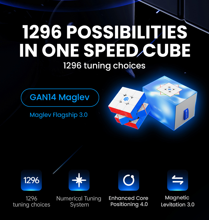 De nieuwe GAN 14 Magnetic MagLev is geboren! Dit is de volgende stap in cubing en heeft in totaal 1.296 verschillende aanpassingsinstellingen! Zo kun je deze cube helemaal naar eigen wens instellen. De belangrijkste eigenschappen van Maglev is de magnetische afstotingstechnologie, je hebt geen veren nodig en een sneller draaigevoel.