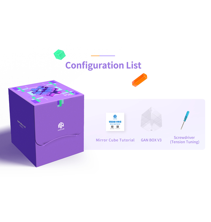Wat zit er in de doos? GAN Mirror M, Instructies voor het oplossen, GAN opbergdoos en een schroevendraaier.