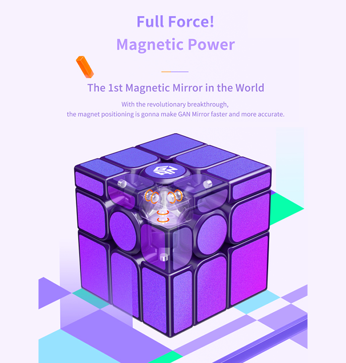 De GAN Mirror M is de nieuwe magnetische mirror van GAN! Met een prachtige paarse basis met glitterblauwe/paarse stickers, maakt deze cube ook nog eens een prachtig pareltje om te zien! Dit is een speedcube die is gebouwd met snelheid in het achterhoofd. Deze beschikt over 48 magneten in de stukken, een schroef/veerspansysteem, geweldige hoeken en paars plastic gecombineerd met paars/blauwe metallic stickers. Als je een 3×3 kunt oplossen, kun je de Mirror ook oplossen. Probeer het eens en kijk hoe snel je deze kunt oplossen! De GAN Mirror Magnetic geeft een moderne draai aan een klassieke puzzel. De UV versie is super glossy en geeft extra grip.